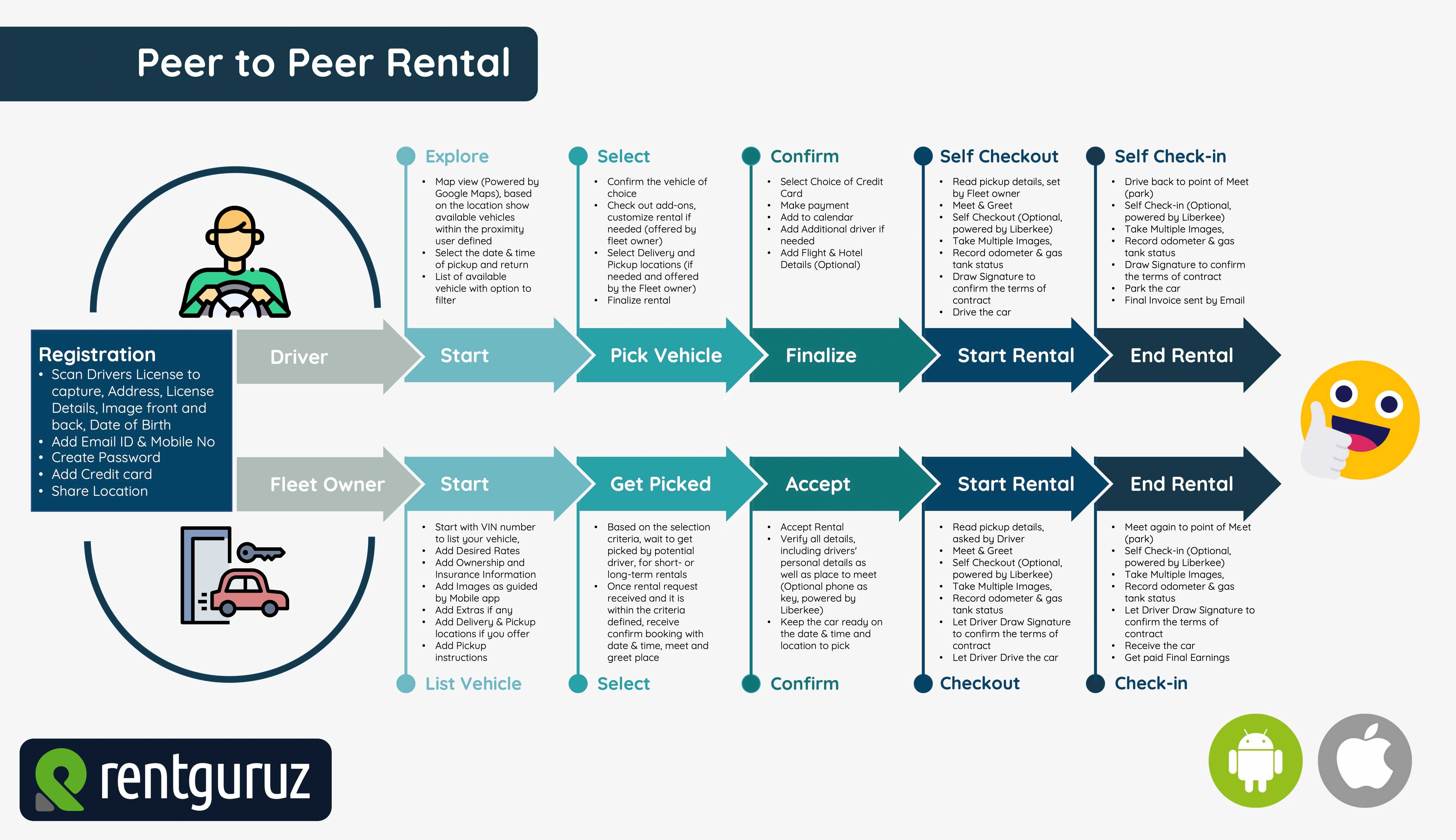Yes, RentGuruz mobile app is available on Apple iOS and Google Play Store. Mobile is included in the license and use do not pay anything extra for it.
